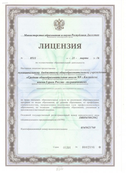 Полное наименование образовательной организации* Муниципальное бюджетное общеобразовательное учреждение "Средняя общеобразовательная школа №9 имени Героев России - пограничников"