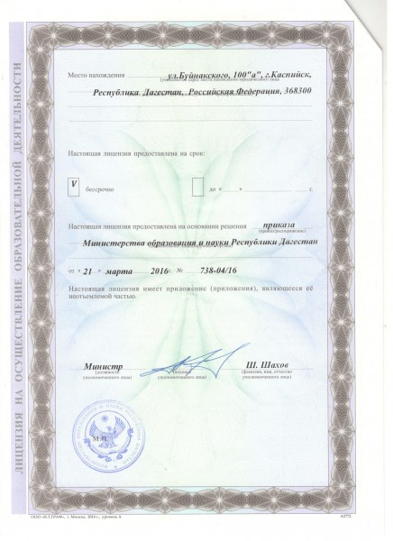 Адрес местонахождения образовательной организации* 368300 РД г. Каспийск ул. Буйнакского 100 а